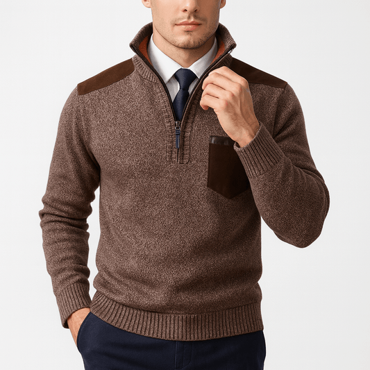 LUXEOUTFIT | Zip-Up Sweater with Leather Patches